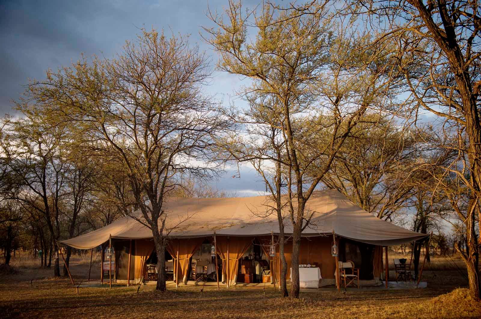 Due to the camp's remoteness, guests have complete control of the camp. The quiet closeness of the 4 tents and 2 suites lends itself to personal bookings or groups accompanied by experienced private guides. The furniture and creature comforts are similar to those found in Serian's Serengeti North, with flushing toilets and bucket showers in an en suite bathroom, massive wrought-iron beds, Moroccan carpets and all the trimmings that make it simplistically gorgeous and pleasant. Guests can experience watching a migration crossing: the intensity, trauma, and sheer spectacle are all-consuming and resonate on a deep and fundamental level.