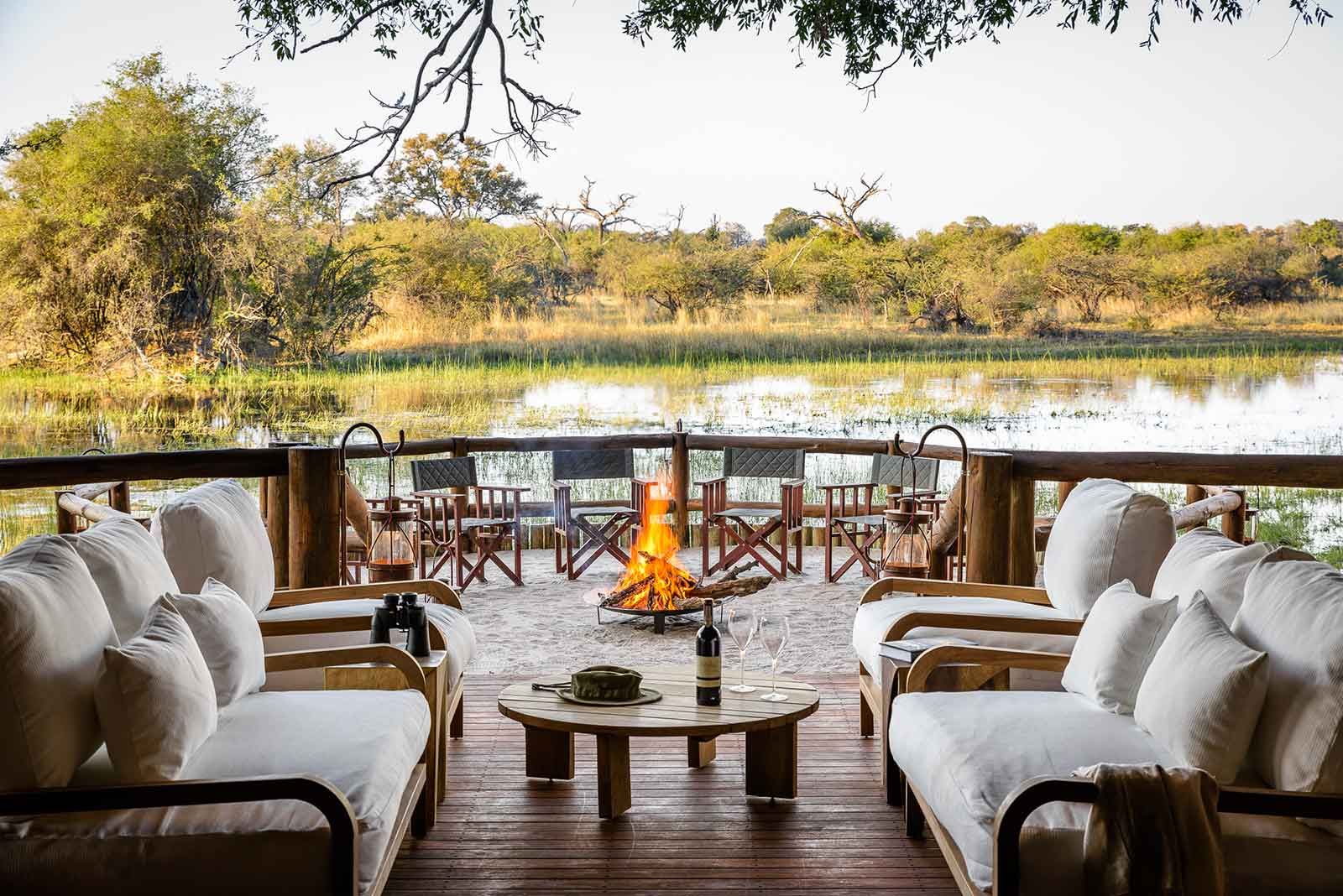 Baines Camp, named after the famed 19th Century explorer and artist Thomas Baines, is located on the Boro River, in the private concession neighbouring the Moremi Game Reserve. Baines Camp has luxurious suites set on elevated platforms with wooden decks offering expansive views over the permanent water of the Boro River. Your four-poster bed is fully mobile and can be wheeled out onto your private deck for a night under the stars! The area is superb for viewing all animals and bird species. You can explore by land in open 4x4 vehicles, often into the night, to discover nocturnal species. Walking safaris teach you how to track animals and the waterways can be explored by motorised boating and mokoro excursions.